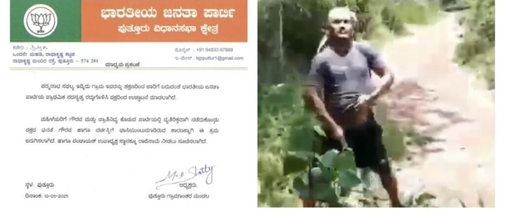 ಪುತ್ತೂರು: ಪದ್ಮನಾಭ ಸಪಲ್ಯ ಇಡ್ಕಿದು ರವರ ಭಾರತೀಯ ಜನತಾ ಪಾರ್ಟಿಯ ಪ್ರಾಥಮಿಕ ಸದಸ್ಯತ್ವವನ್ನು ರದ್ದುಗೊಳಿಸಿ, ಪಕ್ಷದಿಂದ ಉಚ್ಚಾಟಿಸಿ ಪುತ್ತೂರು ಗ್ರಾಮಾಂತರ ಮಂಡಲ ಅಧ್ಯಕ್ಷ ದಯಾನಂದ ಶೆಟ್ಟಿ ಉಜರೆಮಾರು ಆದೇಶಿಸಿದ್ದಾರೆ