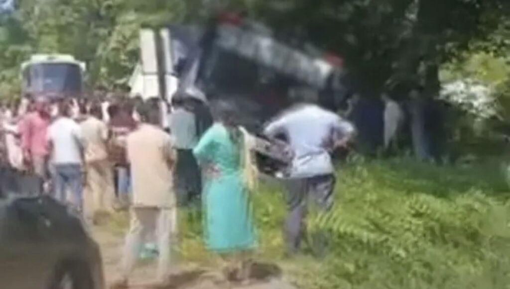 ಅದೃಷ್ಟವಶಾತ್ ಬಸ್ನಲ್ಲಿದ್ದ ಎಲ್ಲರೂ ಪ್ರಾಣಾಪಾಯದಿಂದ ಪಾರಾಗಿದ್ದಾರೆ
