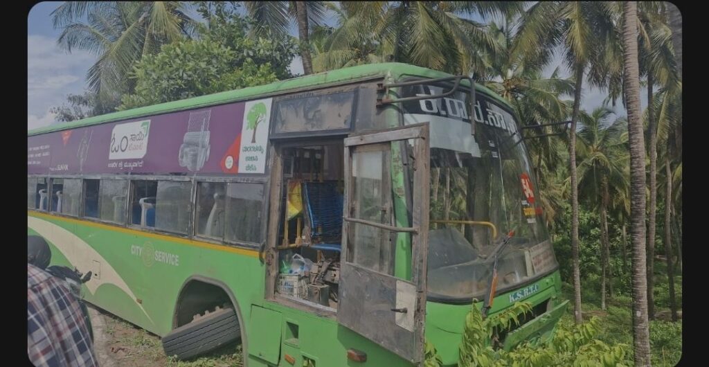 ಅದೃಷ್ಟವಶಾತ್ ಚಾಲಕ, ನಿರ್ವಾಹಕ ಸೇರಿದಂತೆ ಪ್ರಯಾಣಿಕರೆಲ್ಲರೂ ಜೀವಾಪಾಯದಿಂದ ಪಾರಾಗಿದ್ದಾರೆ ಎಂದು ತಿಳಿದು ಬಂದಿದೆ.