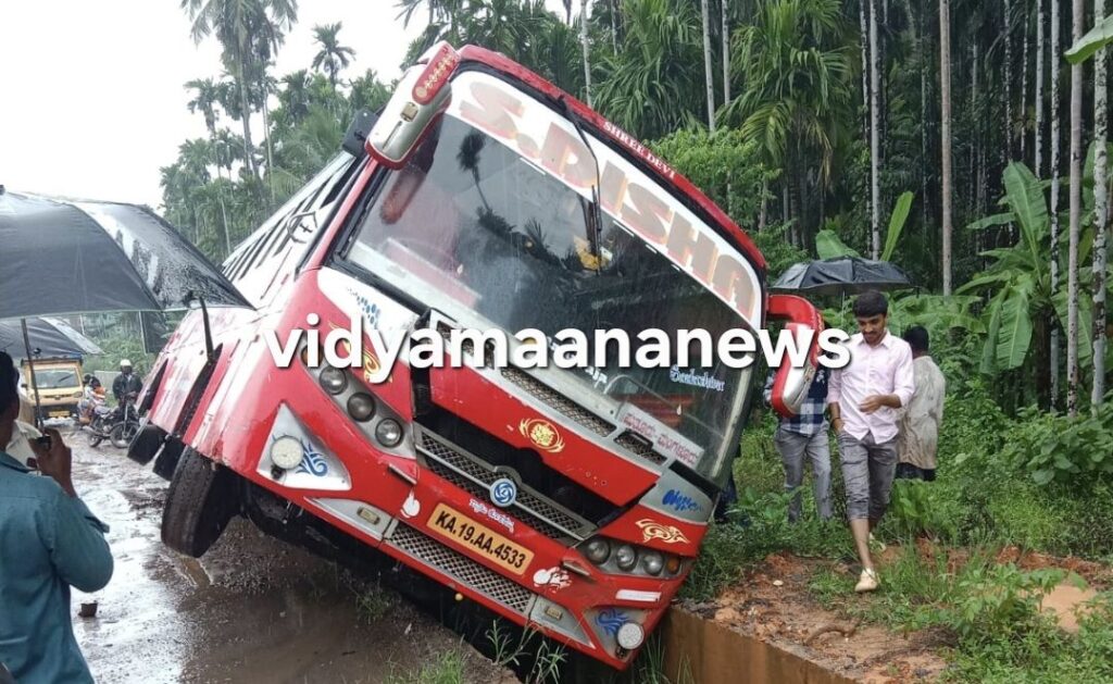 ಪುತ್ತೂರು :ಖಾಸಗಿ ಬಸ್ ಚಾಲಕನ ನಿಯಂತ್ರಣ ತಪ್ಪಿದ ಪರಿಣಾಮ ಬಸ್ ಪಲ್ಟಿಯಾಗಿ ಹಲವರಿಗೆ ಗಾಯಗಳಾಗಿವೆ.