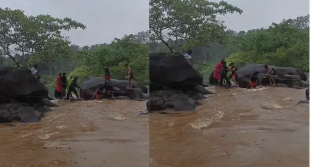 ಅಪಾಯಕ್ಕೆ ಸಿಲುಕಿದ್ದ ಐವರು ಪ್ರವಾಸಿಗರನ್ನು ಸ್ಥಳೀಯರು ರೋಪ್ ಹಾಕಿ ಹಗ್ಗದ ಸಹಾಯದಿಂದ ರಕ್ಷಣೆ ಮಾಡಿದ್ದಾರೆ. ಸ್ಥಳೀಯರ ಸಮಯಪ್ರಜ್ಞೆಯಿಂದಾಗಿ ಪ್ರವಾಸಿಗರ ಜೀವ ಉಳಿದಿದೆ.