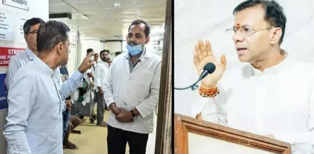 ರಾಜ್ಯದ 600ಕ್ಕೂ ಹೆಚ್ಚು ವೈದ್ಯರು, ಕನ್ಸಲ್ಟೆಂಟ್ಗಳು ಮತ್ತು ಗೋವಾ ಮೆಡಿಕಲ್ ಕಾಲೇಜಿನ ಇಂಟರ್ನಿ ವೈದ್ಯರು ಕ್ಯಾಂಪಸ್ನಲ್ಲಿ ಮಿಂಚಿನ ಪ್ರತಿಭಟನೆ ನಡೆಸಿ, ಆರೋಗ್ಯ ಸಚಿವ ವಿಶ್ವಜೀತ್ ರಾಣೆಯವರ ಬಹಿರಂಗ ಕ್ಷಮೆಯಾಚನೆಗೆ ಪಟ್ಟು ಹಿಡಿದಿದ್ದಾರೆ. ಅಪಘಾತ ವಿಭಾಗದಲ್ಲಿ ರುದ್ರೇಶ್ ಕುಟ್ಟಿಕಾರ್ ಎಂಬ ವೈದ್ಯರನ್ನು ನಿಂದಿಸಿ ಬೆದರಿಕೆ ಹಾಕಿದ ಸ್ಥಳದಲ್ಲೇ ಸಚಿವರು 24 ಗಂಟೆಗಳ ಒಳಗಾಗಿ ಬಹಿರಂಗವಾಗಿ ಕ್ಷಮೆ ಯಾಚಿಸಬೇಕು; ಇಲ್ಲವೇ ಮುಷ್ಕರ ಎದುರಿಸಬೇಕು ಎಂದು ಸವಾಲು ಹಾಕಿದ್ದಾರೆ.
