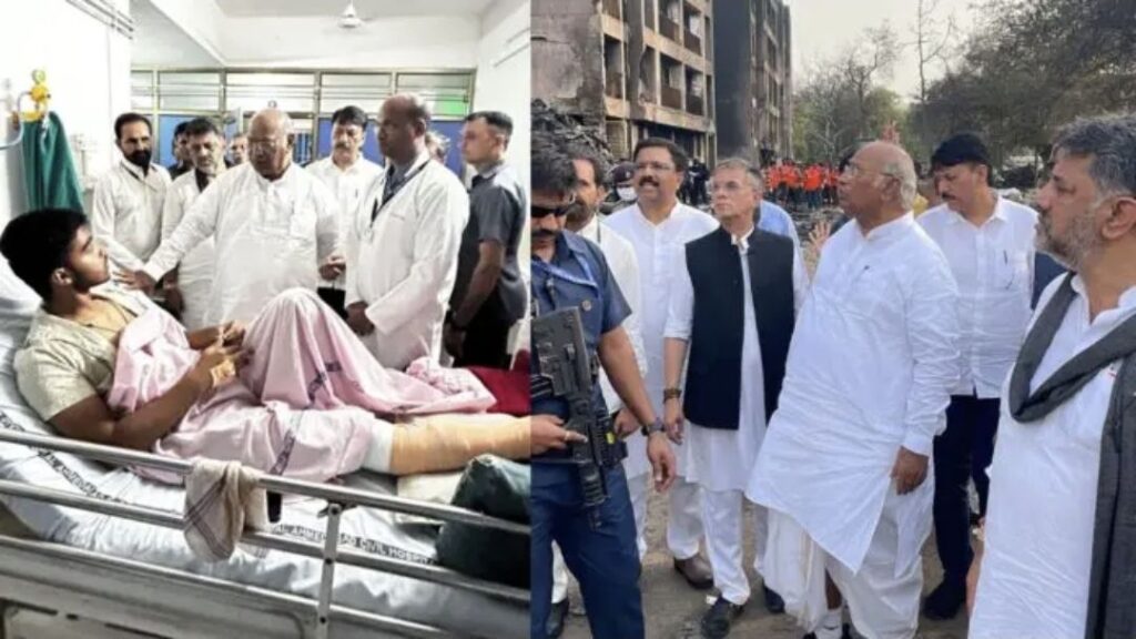 ಇಲ್ಲಿನ ಅಹ್ಮದಾಬಾದ್ ನಲ್ಲಿ ಏರ್ ಇಂಡಿಯಾ ವಿಮಾನ ಪತನಗೊಂಡು ಭೀಕರ ದುರಂತ ಸಂಭವಿಸಿದ ಘಟನಾ ಸ್ಥಳವಾದ ವಿಮಾನ ಡಿಕ್ಕಿ ಹೊಡೆದಿದ್ದ ವಿದ್ಯಾರ್ಥಿಗಳ ಹಾಸ್ಟೆಲ್ ಮತ್ತು ಗಾಯಾಳುಗಳು ದಾಖಲಾಗಿರುವ ಸಿವಿಲ್ ಆಸ್ಪತ್ರೆಗೆ ಇಂದು ಎಐಸಿಸಿ ಅಧ್ಯಕ್ಷ ಮಲ್ಲಿಕಾರ್ಜುನ ಖರ್ಗೆ ಭೇಟಿ ನೀಡಿದ್ದಾರೆ.