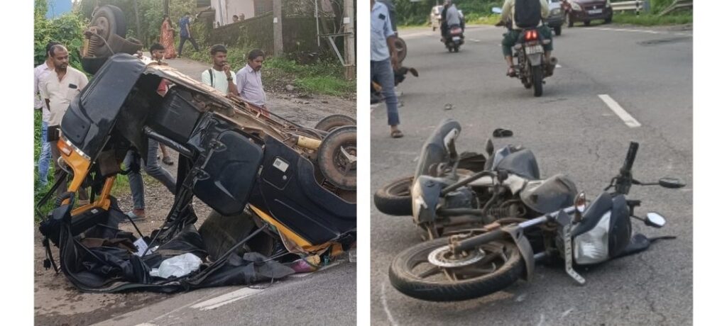 ನಗರದಿಂದ ದರ್ಬೆ ಕಡೆಗೆ ಬೈಕ್ ತೆರಳುತ್ತಿದ್ದ ಸಂದರ್ಭ ಒಳರಸ್ತೆಯಿಂದ ಕಾರು ಏಕಾಏಕಿ ಮುಖ್ಯ ರಸ್ತೆಗೆ ಬಂದಿದ್ದು, ಇದನ್ನು ತಪ್ಪಿಸುವ ನಿಟ್ಟಿನಲ್ಲಿ ಬಲ ಬದಿಗೆ ಬೈಕ್ ಚಲಾಯಿಸಿದ್ದಾರೆ. ಮುಂಭಾಗದಿಂದ ಬಂದ ರಿಕ್ಷಾಕ್ಕೆ ಗುದ್ದಿದ್ದು, ರಿಕ್ಷಾ ಚಾಲಕ ತಕ್ಷಣ ಬ್ರೇಕ್ ಹಾಕಿದ ಕಾರಣ ತಲೆಕೆಳಗಾಗಿ ಬಿದ್ದಿದೆ. ಗಾಯಗಳುಗಳನ್ನು ಸಮೀಪದ ಖಾಸಗೀ ಆಸ್ಪತ್ರೆಗೆ ದಾಖಲಿಸಲಾಗಿದೆ.