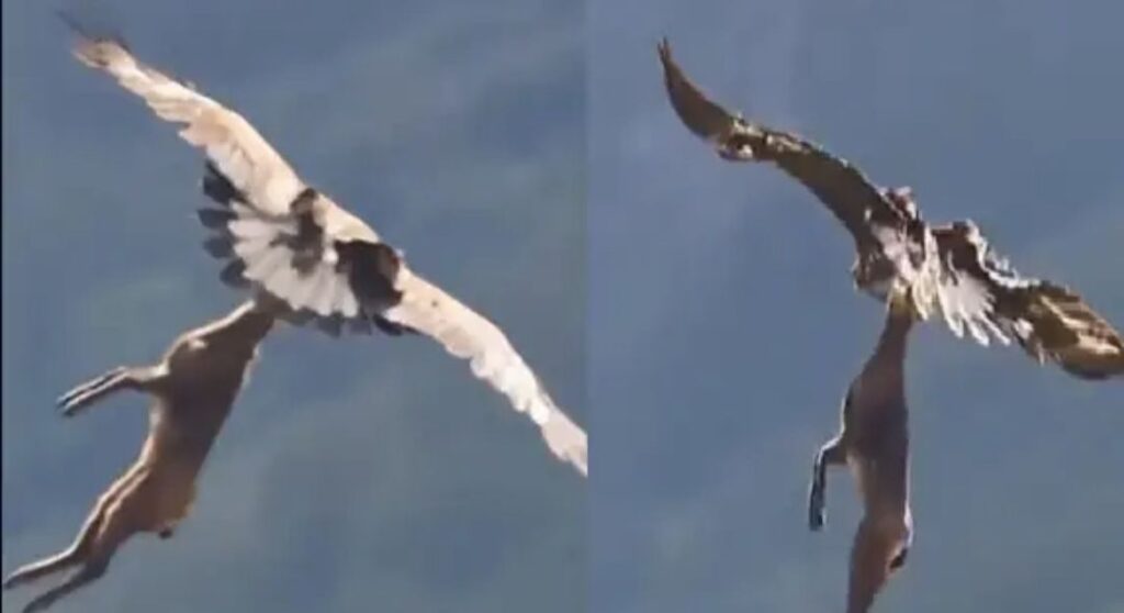 ಪರ್ವತದ ಇಳಿಜಾರಿನಲ್ಲಿ ಹುಲ್ಲು ತಿನ್ನುತ್ತಿದ್ದ ಜಿಂಕೆಯನ್ನು ಕಣ್ಣು ಮಿಟುಕಿಸುವುದರೊಳಗೆ, ಎತ್ತಿಕೊಂಡು ಆಕಾಶಕ್ಕೆ ಹಾರುತ್ತದೆ. ನೀವು ವೀಡಿಯೊವನ್ನು ನೋಡಿದಾಗ, ಹದ್ದು ಜಿಂಕೆಯನ್ನು ಬಹಳ ಸುಲಭವಾಗಿ ತೆಗೆದುಕೊಂಡಂತೆ ತೋರುತ್ತದೆ. ಈ ದೃಶ್ಯವು ನಿಜವಾಗಿಯೂ ಅದ್ಭುತವಾಗಿದೆ, ಏಕೆಂದರೆ ಹದ್ದು ಅಷ್ಟು ದೊಡ್ಡ ಪ್ರಾಣಿಯನ್ನು ಬೇಟೆಯಾಡಬಹುದು ಮತ್ತು ಸಾಗಿಸುತ್ತದೆ ಎಂದು ನಂಬುವುದು ಕಷ್ಟ. ಒಟ್ಟಿನಲ್ಲಿ ವಿಡಿಯೋ ಅಸಲಿಯೋ ಅಥವಾ ಎಡಿಟ್ ಮಾಡಿದ್ದೋ ಗೊತ್ತಿಲ್ಲ. ವಿಡಿಯೋ ಭಾರಿ ವೈರಲ್ ಆಗಿದೆ.