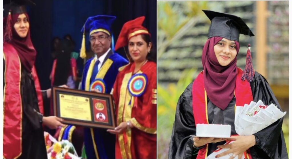 ಸುಳ್ಯ: ಕೆ.ವಿ.ಜಿ ಮೆಡಿಕಲ್ ಕಾಲೇಜಿನ ಅಧೀನದಲ್ಲಿರುವ ಕೆ.ವಿ.ಜಿ ಇನ್ಸ್ಟಿಟ್ಯೂಟ್ ಆಫ್ ಅಲೈಡ್ ಹೆಲ್ತ್ ಅಂಡ್ ಸೈನ್ಸ್ ಸಂಸ್ಥೆಯಲ್ಲಿ B.Sc MLT (ಮೆಡಿಕಲ್ ಲ್ಯಾಬ್ ಟೆಕ್ನಾಲಜಿ) ಪದವಿ ಕೋರ್ಸ್ ಪೂರೈಸಿದ ಹಮೀದಾ ಕೌಸರ್ ಅವರಿಗೆ ಎ.ಒ.ಎಲ್.ಇ ಅಧ್ಯಕ್ಷ ಡಾ. ಕೆ.ವಿ. ಚಿದಾನಂದ ರವರು ಪದವಿ ಪ್ರಧಾನ ಮಾಡಿದರು.