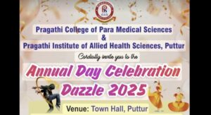 ಪುತ್ತೂರು: ಪ್ರಗತಿ ಕಾಲೇಜ್ ಆಫ್ ಪ್ಯಾರಾ ಮೆಡಿಕಲ್ ಸೈನ್ಸಸ್ ಹಾಗೂ ಪ್ರಗತಿ ಇನ್ಸ್ಟಿಟ್ಯೂಟ್ ಆಫ್ ಅಲೈಡ್ ಹೆಲ್ತ್ ಸೈನ್ಸಸ್ ವತಿಯಿಂದ “Dazzle–2025” ವಾರ್ಷಿಕೋತ್ಸವವು ಸೆಪ್ಟೆಂಬರ್ 18, ಗುರುವಾರ ಬೆಳಿಗ್ಗೆ 10 ಗಂಟೆಗೆ ಪುತ್ತೂರು ಟೌನ್ ಹಾಲ್ನಲ್ಲಿ ನಡೆಯಲಿದೆ.