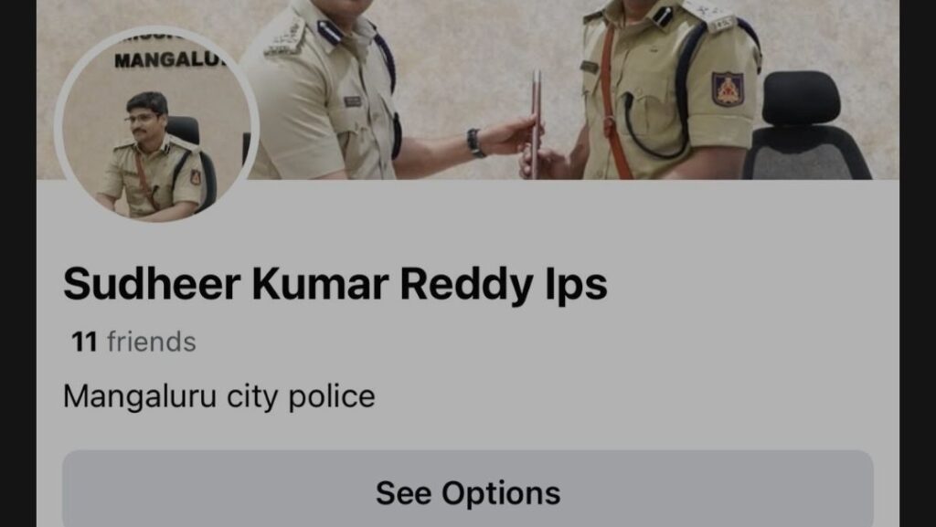 ಮಂಗಳೂರು, ನ.5 — ಮಂಗಳೂರಿನ ಪೊಲೀಸ್ ಕಮಿಷನರ್ ಸುಧೀರ್ ಕುಮಾರ್ ರೆಡ್ಡಿ IPS ಅವರ ಹೆಸರಿನಲ್ಲಿ ಸೈಬರ್ ಖದೀಮರು ನಕಲಿ ಫೇಸ್ಬುಕ್ ಖಾತೆ ತೆರೆಯುವ ಮೂಲಕ ಅಧಿಕಾರಿಯನ್ನೇ ಮೋಸಗೊಳಿಸಲು ಮುಂದಾಗಿದ್ದಾರೆ.