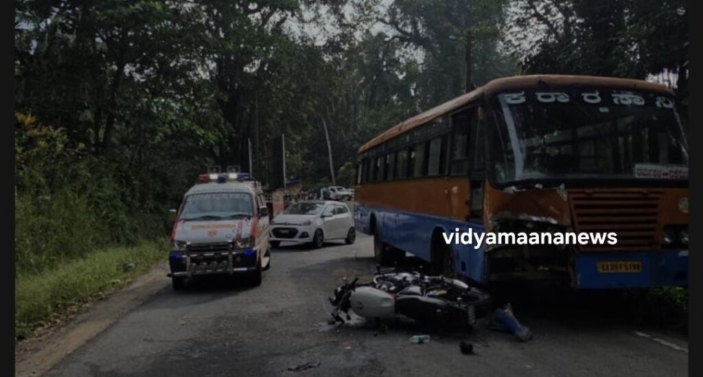 ನಿಡ್ಲೆ : ಪಾರ್ಪಿಕಲ್ ಸೇತುವೆ ಸಮೀಪದ ತಿರುವಿನಲ್ಲಿ ಧರ್ಮಸ್ಥಳದಿಂದ ಬೆಂಗಳೂರು ಕಡೆಗೆ ತೆರಳುತ್ತಿದ್ದ ಬೈಕ್ ಮತ್ತು ಸುಬ್ರಹ್ಮಣ್ಯದಿಂದ ಧರ್ಮಸ್ಥಳದತ್ತ ಬರುತ್ತಿದ್ದ ಕೆಎಸ್ಆರ್ಟಿಸಿ ಬಸ್ ನಡುವೆ ನವೆಂಬರ್ 30ರ ಬೆಳಿಗ್ಗೆ ಸಂಭವಿಸಿದ ಅಪಘಾತದಲ್ಲಿ ಬೈಕ್ ಸವಾರ ದೀಪಕ್ ಜಿ. (ಕೋಲಾರ–ಮುಳಬಾಗಿಲು) ಮೃತರಾಗಿದ್ದಾರೆ.