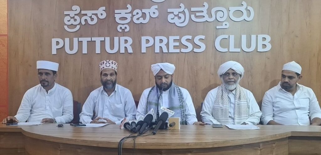 ಪತ್ರಿಕಾ ಗೋಷ್ಠಿಯಲ್ಲಿ ಸಮಸ್ತ ಕೇರಳ ಜಂ ಇಯ್ಯತ್ತುಲ್ ಉಲಮಾ ಪುತ್ತೂರು ತಾಲೂಕು ಪ್ರಧಾನ ಕಾರ್ಯದರ್ಶಿ ಅಬ್ದುಲ್ ಹಮೀದ್ ದಾರಿಮಿ ಸಂಪ್ಯ,ಸಮಸ್ತ ಕೇರಳ ಜಂ ಇಯ್ಯತ್ತುಲ್ ಉಲಮಾ ಪುತ್ತೂರು ತಾಲೂಕು ಸಮಿತಿಯ ಉಪಾಧ್ಯಕ್ಷರಾದ ಉಮರ್ ದಾರಿಮಿ ಸಾಲ್ಮರ,ಜಂ ಇಯ್ಯತ್ತುಲ್ ಮುಅಲ್ಲಿಮೀನ್ ದಕ್ಷಿಣ ಕನ್ನಡ ಜಿಲ್ಲಾಧ್ಯಕ್ಷರಾದ ಶಂಸುದ್ದೀನ್ ದಾರಿಮಿ ಪಮ್ಮಲೆ,ಎಸ್ ಕೆ ಎಸ್ ಎಸ್ ಎಫ್ ಪುತ್ತೂರು ವಲಯಾಧ್ಯಕ್ಷ