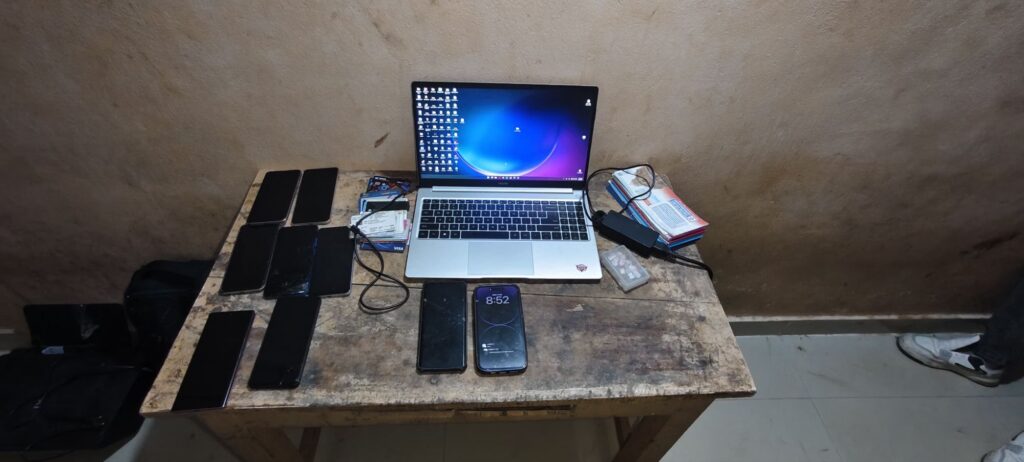 ಪೊಲೀಸರು ಆರೋಪಿಗಳಿಂದ ಒಂದು ಲ್ಯಾಪ್ಟಾಪ್, 21 ಮೊಬೈಲ್ ಫೋನ್, 20 ಸಿಮ್ ಕಾರ್ಡ್ ಮತ್ತು 20 ಡೆಬಿಟ್/ಕ್ರೆಡಿಟ್ ಕಾರ್ಡ್ಗಳನ್ನು ವಶಪಡಿಸಿಕೊಂಡಿದ್ದಾರೆ.