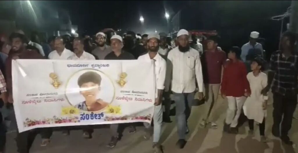 ಹತ್ಯೆಗೀಡಾದ ಬಾಲಕ ಸಂಕೇತ್ ಭಾವಚಿತ್ರವಿರುವ ಬ್ಯಾನರ್ ಹಿಡಿದು, ಮುಂಬತ್ತಿ ಬೆಳಗುವ ಮೂಲಕ ಹತ್ಯೆಯನ್ನು ಖಂಡಿಸಿದ ಸ್ಥಳೀಯರು, ಬಡಾವಣೆಯಲ್ಲಿ ಶಾಂತಿ ನೆಲೆಸುವಂತೆ ಒತ್ತಾಯಿಸಿದರು.