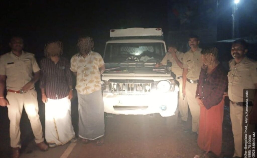 ಮಾ.26ರಂದು ಬೆಳಗ್ಗಿನ ಜಾವ ಸುಳ್ಯ ಪೊಲೀಸ್ ಠಾಣೆಯ ಉಪನಿರೀಕ್ಷಕ ಸಂತೋಷ್ ಬಿ.ಪಿ. ಅವರು ಸಿಬ್ಬಂದಿಗಳೊಂದಿಗೆ ರೌಂಡ್ಸ್ ಕರ್ತವ್ಯದಲ್ಲಿದ್ದ ವೇಳೆ ಸುಳ್ಯ–ಆಲೆಟ್ಟಿ ಕ್ರಾಸ್ ಬಳಿ ಕೆಎಲ್ 59 ಡಿ 2979 ನೋಂದಣಿಯ ಬೊಲೆರೊ ಪಿಕಪ್ ವಾಹನ ಅನುಮಾನಾಸ್ಪದವಾಗಿ ಸಂಚರಿಸುತ್ತಿರುವುದು ಗಮನಕ್ಕೆ ಬಂದಿದೆ. ತಕ್ಷಣ ವಾಹನವನ್ನು ಆಲೆಟ್ಟಿ ಗ್ರಾಮದ ಮಿತ್ತಡ್ಕ ರೋಟರಿ ಶಾಲೆ ಸಮೀಪ ತಡೆದು ಪರಿಶೀಲನೆ ನಡೆಸಲಾಯಿತು.