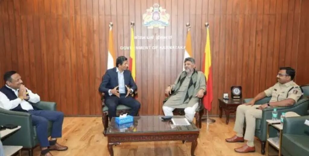 ನಾಳೆಯ ಪಂದ್ಯಕ್ಕೆ ಆಹ್ವಾನ ನೀಡುವ ಸಲುವಾಗಿ ಕೆಎಸ್ಸಿಎ ಅಧ್ಯಕ್ಷ ವೆಂಕಟೇಶ್ ಪ್ರಸಾದ್ ಮತ್ತು ಪದಾಧಿಕಾರಿಗಳ ತಂಡ ಇಂದು ಮುಖ್ಯಮಂತ್ರಿ ಸಿದ್ದರಾಮಯ್ಯ ಅವರನ್ನು ಅವರ ‘ಕಾವೇರಿ’ ನಿವಾಸದಲ್ಲಿ ಭೇಟಿ ಮಾಡಿತು. ಇದೇ ವೇಳೆ ವಿಧಾನಸೌಧದಲ್ಲಿ ಉಪಮುಖ್ಯಮಂತ್ರಿ ಡಿ.ಕೆ. ಶಿವಕುಮಾರ್ ಅವರನ್ನು ಕೂಡ ಭೇಟಿ ಮಾಡಿ ಮಾತುಕತೆ ನಡೆಸಿದರು. ಈ ಸಂದರ್ಭದಲ್ಲಿ ಶಾಸಕರು ಸದನದಲ್ಲಿ ಇಟ್ಟಿದ್ದ ಟಿಕೆಟ್ ಬೇಡಿಕೆಯ ಬಗ್ಗೆ ಸಿಎಂ ಸಿದ್ದರಾಮಯ್ಯ ಪ್ರಸ್ತಾಪಿಸಿದರು.