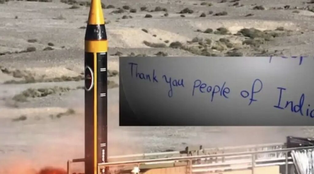 ಇತ್ತೀಚೆಗೆ, ಟೆಹ್ರಾನ್ನಿಂದ ಕಳುಹಿಸಲಾಗುತ್ತಿರುವ ಕ್ಷಿಪಣಿಗಳ ಮೇಲೆ “ಧನ್ಯವಾದಗಳು ಭಾರತ” ಎಂದು ಬರೆದಿರುವುದನ್ನು ನೋಡಿ ಜಗತ್ತು ಆಘಾತಕ್ಕೊಳಗಾಗಿದೆ. ಇದು ರಾಜತಾಂತ್ರಿಕ ವಲಯಗಳಲ್ಲಿ ಕೋಲಾಹಲಕ್ಕೆ ಕಾರಣವಾಗಿದೆ. ಇರಾನ್ ಇಸ್ರೇಲ್ಗೆ ಕಳುಹಿಸಲಾಗುತ್ತಿರುವ ಈ ಕ್ಷಿಪಣಿಗಳ ಬಗ್ಗೆ ಇಂತಹ ಸಂದೇಶಗಳನ್ನು ಏಕೆ ಕಳುಹಿಸುತ್ತಿದೆ ಎಂದು ಎಲ್ಲರೂ ಆಶ್ಚರ್ಯಪಡುತ್ತಿದ್ದಾರೆ.