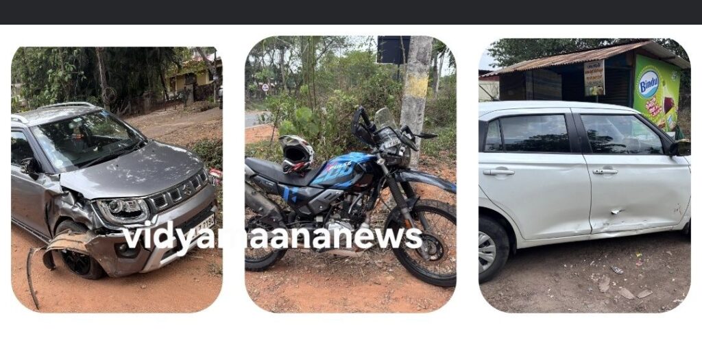 ಪುತ್ತೂರಿನಿಂದ ಸುಳ್ಯ ಕಡೆಗೆ ಸಾಗುತ್ತಿದ್ದ ಬೈಕ್ ಹಾಗೂ ಸುಳ್ಯದಿಂದ ಪುತ್ತೂರು ಕಡೆಗೆ ಬರುತ್ತಿದ್ದ ಕಾರುಗಳ ನಡುವೆ ಈ ಅಪಘಾತ ಸಂಭವಿಸಿದೆ. ಅಪಘಾತದ ರಭಸಕ್ಕೆ ಕಾರುಗಳಿಗೆ ಹಾನಿಯಾಗಿದೆ.