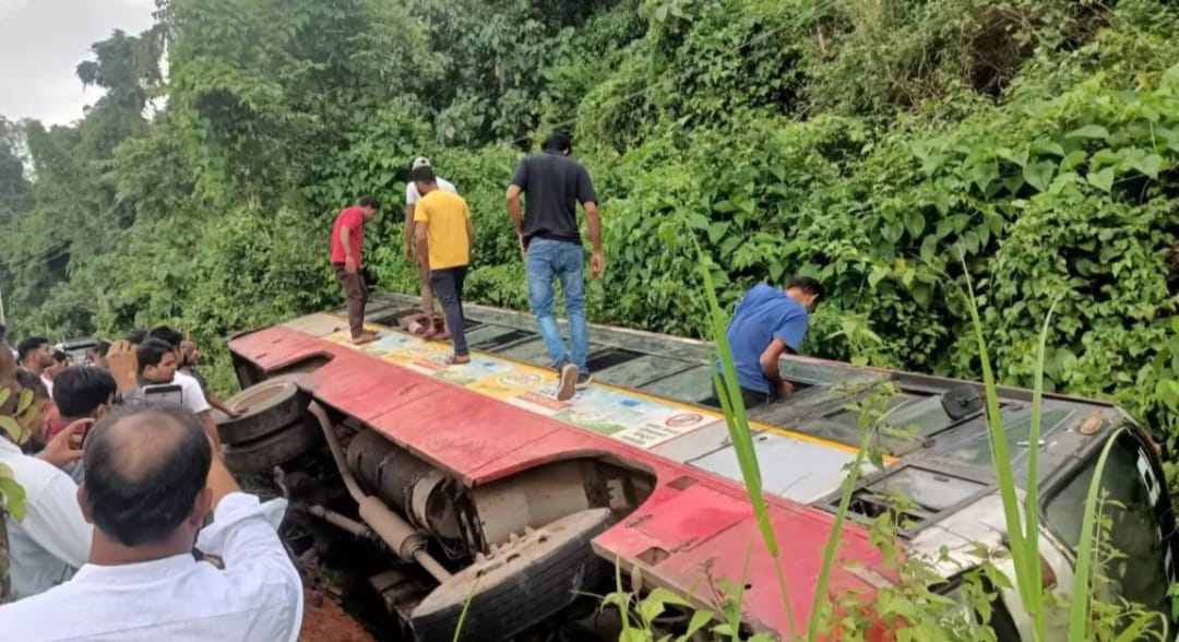 ಘಟನೆಯಲ್ಲಿ ಬಸ್ ಪ್ರಯಾಣಿಕರಿಗೆ ಸಣ್ಣಪುಟ್ಟ ಗಾಯಗಳಾಗಿದ್ದು, ಸ್ಥಳೀಯ ಯುವಕರು ಬಸ್ಸಿನಿಂದ ಪ್ರಯಾಣಿಕರನ್ನು ಹೊರಗೆ ತೆಗೆಯಲು ಸಹಕರಿಸಿದ್ದು, ಗಾಯಗೊಂಡವರು ಸ್ಥಳೀಯ ಆಸ್ಪತ್ರೆಯಲ್ಲಿ ಚಿಕಿತ್ಸೆ ಪಡೆದಿದ್ದಾರೆ.