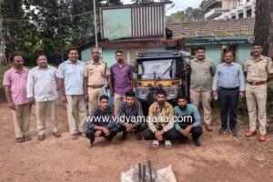 ಪುತ್ತೂರು; ಪುತ್ತೂರು ಅರಣ್ಯ ವಿಭಾಗ ವ್ಯಾಪ್ತಿಯ ಕಲೆಂಜಿಮಲೆ ರಕ್ಷಿತಾರಣ್ಯದಿಂದ ಅಕ್ರಮವಾಗಿ ಆಲುಮಡ್ಡಿ ಶೇಖರಿಸಿ ಸಾಗಾಟ ಮಾಡುತ್ತಿದ್ದ ೪ ಮಂದಿಯನ್ನು ಪುತ್ತೂರು ಅರಣ್ಯ ಇಲಾಖೆ ಬಂಧಿಸಿದೆ. ಈ ಸಂದರ್ಭ ಆರೋಪಿಗಳು ಆಲುಮಡ್ಡಿ ಸಾಗಾಟಕ್ಕೆ ಬಳಕೆ ಮಾಡಿದ್ದ ಅಟೋ ರಿಕ್ಷಾ ಸಹಿತ ರೂ.೧.೫೦ ಲಕ್ಷ ಮೌಲ್ಯದ ವಸ್ತುಗಳನ್ನು ವಶಪಡಿಸಿಕೊಳ್ಳಲಾಗಿದೆ. ಬಂಟ್ವಾಳ ತಾಲೂಕಿನ ಕೆದಿಲ ಪಾಟ್ರಕೋಡಿ ಬಾಯಬೆ ಮನೆಯ ನಿವಾಸಿ ಉಮ್ಮರ್ ಫಾರೂಕ್ (೪೪), ಪಾಟ್ರಕೋಡಿ ಮನೆಯ ನಿವಾಸಿ ಮಹಮ್ಮದ್ ಹಸೈನಾರ್( ೩೦), ತಾಳಿಪಡ್ಪು ಮನೆ ನಿವಾಸಿ ಉಮ್ಮರ್ ಪಾರೂಕ್( ೨೬) ಮತ್ತು ಪಾಟ್ರಕೋಡಿ ಮನೆಯ ಆಲಿ ಹೈದರ್ ಎಂ.ಕೆ ಬಂಧಿತ ಆರೋಪಿಗಳು.