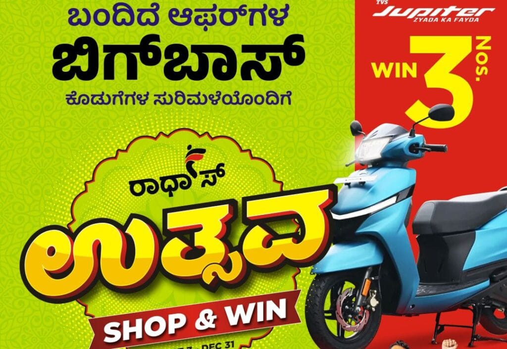 ಕಳೆದ 29 ವರ್ಷಗಳಿಂದ ಪುತ್ತೂರಿನ ಜನತೆಗೆ ಜವುಳಿ ಉದ್ಯಮದಲ್ಲಿ ಮನೆ ಮಾತಮಾತಾಗಿರುವ ರಾಧಾ’ಸ್ನಲ್ಲಿ ಪ್ರತಿವರ್ಷ ಮಾನ್ಸೂನ್ ಮೇಳವನ್ನು ನಡೆಸುವ ಜೊತೆಗೆ ಗ್ರಾಹಕರಿಗೆ ಈ ಭಾರಿ ಮತ್ತಷ್ಟು ಕೊಡುಗಗಳನ್ನು ನೀಡಲು ಮುಂದಾಗಿದೆ. ಆಫರ್ಗಳ ಬಿಗ್ಬಾಸ್ ರಾಧಾಸ್ ಉತ್ಸವದಲ್ಲಿ ಶಾಫ್ & ವಿನ್ ವಿಶೇಷ ಕೊಡುಗೆಗಳನ್ನು ನೀಡುತ್ತುದೆ. ಜವುಳಿ ಖರೀದಿಗೆ ಶೇ.15 ರಿಯಾಯಿತಿಯೊಂದಿಗೆ ರೂ.3,999ರ ಜವುಳಿ ಖರೀದಿಗೆ ಗಿಫ್ಟ್ ಕೂಪನ್ ನೀಡಲಾಗುತ್ತಿದೆ. ಗ್ರಾಹಕರಿಗೆ ಪ್ರತಿವಾರ ಪ್ರಥಮ, ದ್ವಿತೀಯ. ತೃತೀಯ ಬಹುಮಾನಗಳ ಜೊತೆಗೆ 9 ಆಕರ್ಷಕ ಬಹುಮಾನಗಳು ಸೇರಿದಂತೆ 12 ಬಹುಮಾನಗಳನ್ನು ನೀಡಲಾಗುತ್ತಿದೆ. ಪ್ರತಿ ತಿಂಗಳು ಬಂಪರ್ ಡ್ರಾ ನಡೆಯಲಿದ್ದು ಟಿವಿಎಸ್ ಜ್ಯುಪಿಟರ್ ದ್ವಿಚಕ್ರ ವಾಹನ ಗೆಲ್ಲುವ ಅವಕಾಶವಿದೆ. ಈ ಕೊಡುಗೆಗಗಳ ಅ.7ರಿಂದ ಪ್ರಾರಂಭಗೊಂಡು ಡಿ.31ರ ತನಕ ದೊರೆಯಲಿದ್ದು ಗ್ರಾಹಕರು ಸದುಪಯೋಗ ಪಡೆದುಕೊಳ್ಳಬಹುದು.