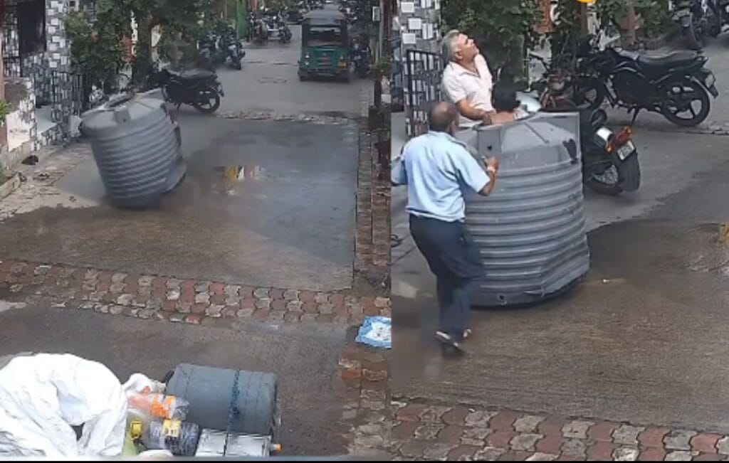 ಮಹಿಳೆಯ ಮೇಲೆ ನೀರಿನ ಟ್ಯಾಂಕ್ ಒಂದು ಬಿದ್ದಿದ್ದು, ಘಟನೆಯ ವಿಡಿಯೋ ವೈರಲ್ ಆಗಿದೆ. ಅದೃಷ್ಟವಶಾತ್ ಮಾರಣಾಂತಿಕ ಘಟನೆಯಿಂದ ಮಹಿಳೆ ಸ್ವಲ್ಪದರಲ್ಲೇ ಪಾರಾಗಿದ್ದಾಳೆ.