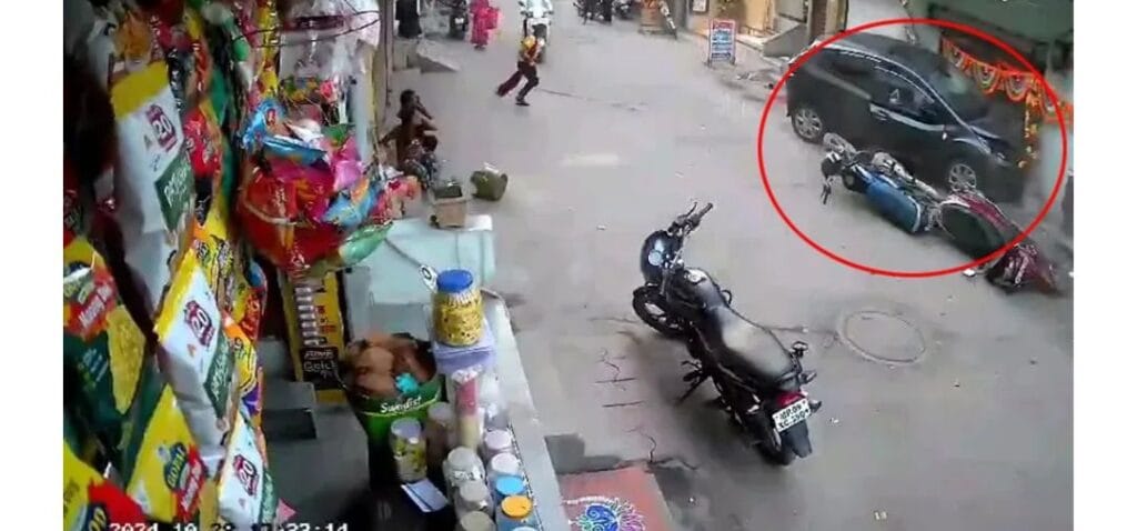 ಇಂದೋರ್ನ ಜೈಭವಾನಿ ನಗರದಲ್ಲಿ ಈ ಘಟನೆ ನಡೆದಿದ್ದು, ಕಿರಿದಾದ ರಸ್ತೆಯಲ್ಲಿ ಕಾರು ಚಾಲಕ ವೇಗವಾಗಿ ಕಾರು ಚಲಾಯಿಸಿದ್ದಾನೆ.