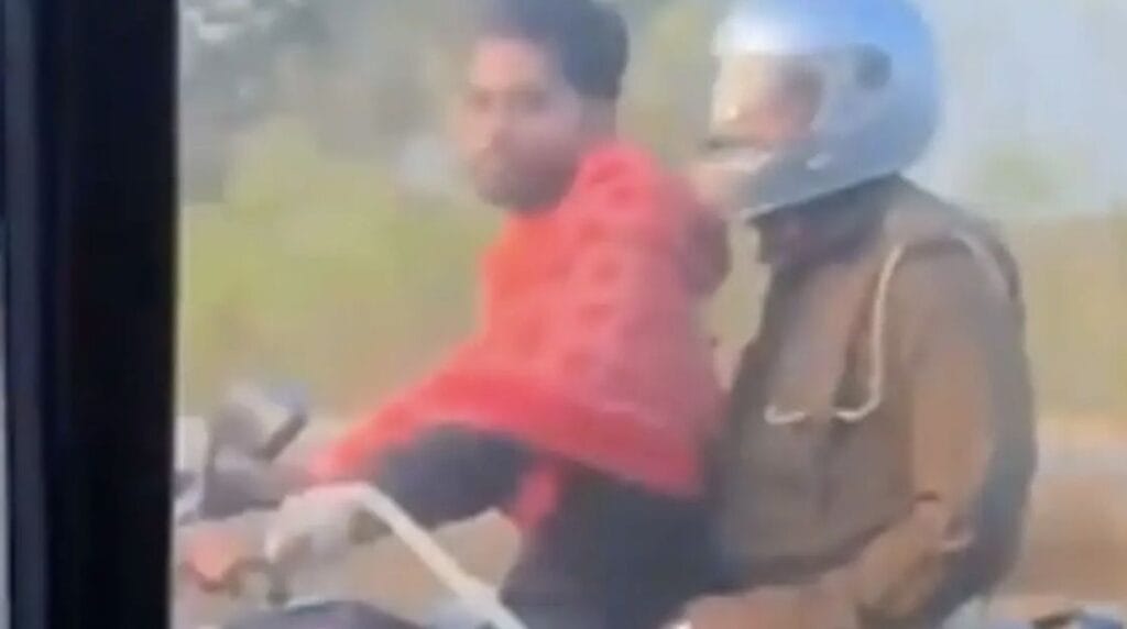 ಯುಪಿ ಪೋಲೀಸ್ ಹಿಂದೆ ಕುಳಿತಿದ್ದಾಗ ಅಪರಾಧಿ ಹೆಲ್ಮೆಟ್ ಇಲ್ಲದೆ ದ್ವಿಚಕ್ರ ವಾಹನ ಓಡಿಸುತ್ತಿರುವುದನ್ನು ವೀಡಿಯೊ ತೋರಿಸಿದೆ. ಆರೋಪಿ ಹೆಲ್ಮೆಟ್ ಇಲ್ಲದೆ ಸವಾರನ ಆಸನದಲ್ಲಿ ಕುಳಿತಿದ್ದರೆ ಪೊಲೀಸ್, ಹೆಲ್ಮೆಟ್ ಧರಿಸಿ ಪಿಲಿಯನ್ ರೈಡರ್ ಆಗಿದ್ದಾರೆ.