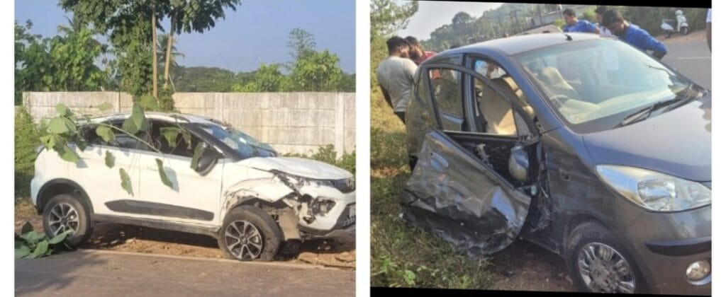 ಮಡಿಕೇರಿಯಿಂದ ಬರುತ್ತಿದ್ದ ನೆಕ್ಸಾನ್ ಕಾರು ಹಾಗೂ ನೆಹರು ನಗರದಿಂದ ದರ್ಬೆಯತ್ತ ಸಾಗುತ್ತಿದ್ದ ಐ೧೦ ಕಾರಿನ ನಡುವೆ ಡಿಕ್ಕಿ ಸಂಭವಿಸಿದೆ.ನೆಕ್ಸಾನ್ ಕಾರಿನಲ್ಲಿ ಕುಟುಂಬವೊಂದು ಪ್ರಯಾಣಿಸುತಿತ್ತು ಎಂದು ತಿಳಿದು ಬಂದಿದೆ.