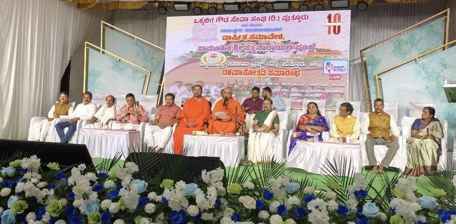 ತೆಂಕಿಲ ಗೌಡ ಸಮುದಾಯಭವನದಲ್ಲಿ ಶನಿವಾರ ಪುತ್ತೂರು ಒಕ್ಕಲಿಗ ಗೌಡಸಂಘ ಹಾಗೂ ಸಹಸಂಸ್ಥೆಗಳ ಆಶ್ರಯದಲ್ಲಿ ನಡೆದ ಒಕ್ಕಲಿಗ ಸ್ವಸಹಾಯ ಟ್ರಸ್ಟ್ ದಶಮಾನೋತ್ಸವ ಅಂಗವಾಗಿ ನೂತನ ಸಭಾಭವನವನ್ನು ಲೋಕಾರ್ಪಣೆಗೊಳಿ, ಸಾರ್ವಜನಿಕ ಸತ್ಯನಾರಾಯಣ ಪೂಜಾ ಕಾರ್ಯಕ್ರಮದ ಸಭಾಕಾರ್ಯಕ್ರಮದಲ್ಲಿ ಆಶೀರ್ವಚನ ನೀಡಿದರು.