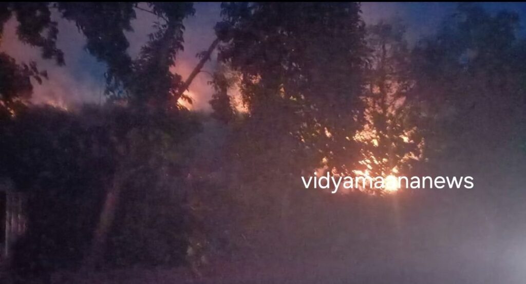 ಅಗ್ನಿಶಾಮಕ ದಳದವರು ಮತ್ತು ಸ್ಥಳೀಯರು ಬೆಂಕಿ ನಂದಿಸಲು ಶ್ರಮಿಸುತ್ತಿದ್ದಾರೆ.