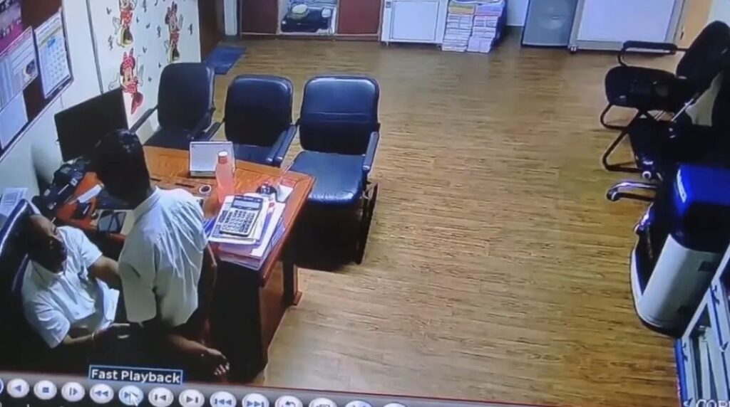 ವೈರಲ್ ವಿಡಿಯೋದಲ್ಲಿ ಪ್ರಾಂಶುಪಾಲ, ವಿದ್ಯಾರ್ಥಿಯೊಬ್ಬನ ಖಾಸಗಿ ಭಾಗಗಳನ್ನು ಅಸಭ್ಯವಾಗಿ ಮುಟ್ಟುತ್ತಿರುವುದು ಕಂಡುಬಂದಿದೆ. ವಿಡಿಯೋದಲ್ಲಿರುವ ದೃಶ್ಯಗಳ ಪ್ರಕಾರ, ಪ್ರಾಂಶುಪಾಲ ವಿದ್ಯಾರ್ಥಿಯ ಪ್ಯಾಂಟ್ ತೆರೆಯಲು ಪ್ರಯತ್ನಿಸುತ್ತಿದ್ದಾನೆ ಎಂದು ಆರೋಪಿಸಲಾಗಿದೆ. ರವೀಂದರ್ ರಾವ್ ಎಂಬುವವರನ್ನು ಪ್ರಾಂಶುಪಾಲರೆಂದು ಗುರುತಿಸಲಾಗಿದೆ.