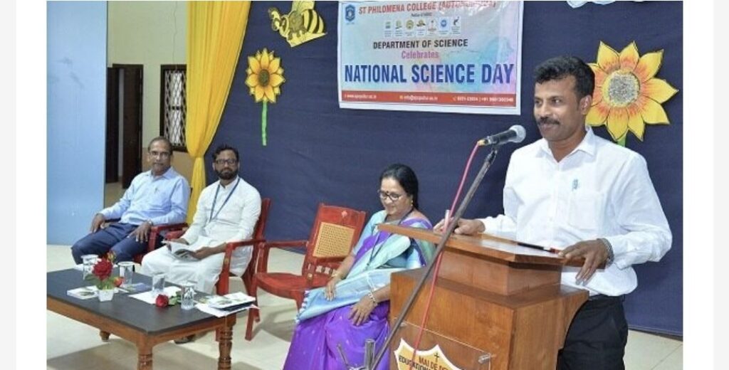 ಪುತ್ತೂರು: ಸಂತ ಫಿಲೋಮಿನಾ ಕಾಲೇಜ್ (ಸ್ವಾಯತ್ತ) ವಿಜ್ಞಾನ ವೇದಿಕೆ ವತಿಯಿಂದ ರಾಷ್ಟ್ರೀಯ ವಿಜ್ಞಾನ ದಿನಾಚರಣೆ ಆಚರಿಸಲಾಯಿತು. ಭಾರತೀಯ ಭೌತಶಾಸ್ತ್ರಜ್ಞ ಸರ್ ಸಿ.ವಿ.ರಾಮನ್ ಅವರ ಪರಿಣಾಮದ ಆವಿಷ್ಕಾರವನ್ನು ಸ್ಮರಿಸಲು ಕಾರ್ಯಕ್ರಮವನ್ನು ಆಯೋಜಿಸಿತು.