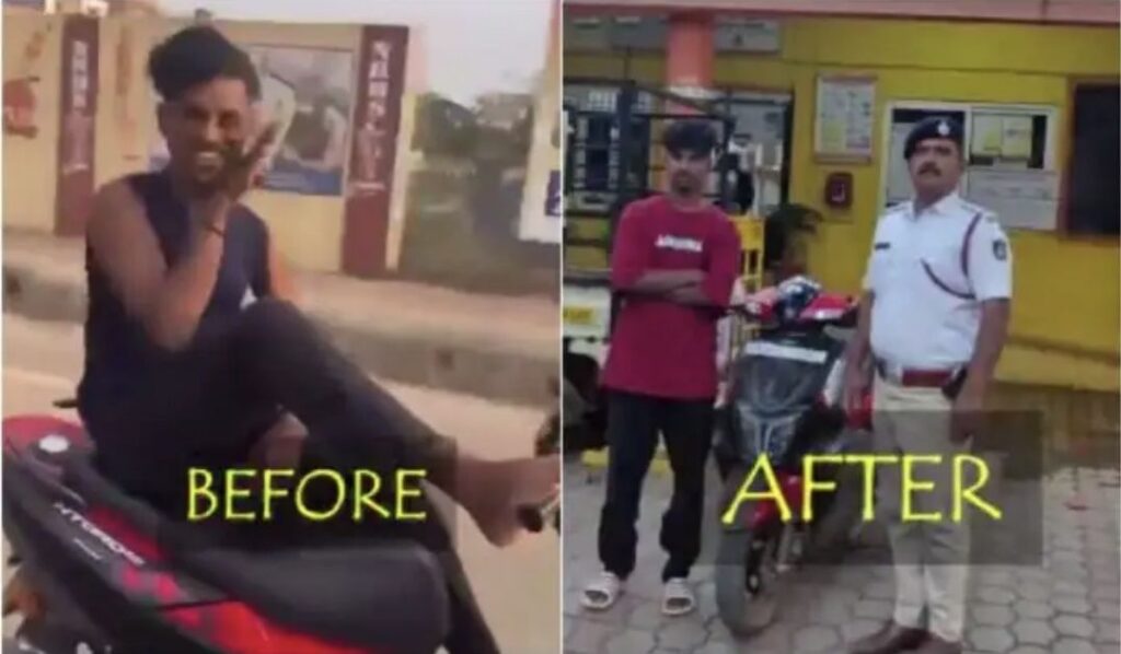 ಹುಬ್ಬಳ್ಳಿ-ಗದಗ ರಸ್ತೆಯಲ್ಲಿ ಪುಂಡನೊಬ್ಬ ಈ ರೀತಿಯಾಗಿ ಬೈಕ್ ಮೇಲೆ ಸ್ಟಂಟ್ ಮಾಡುತ್ತಾ ವಿಡಿಯೋ ರೆಕಾರ್ಡ್ ಮಾಡಿ ಸೋಷಿಯಲ್ ಮೀಡಿಯಾಗೆ ಅಪ್ಲೋಡ್ ಮಾಡಿದ್ದ. ಕೊನೆಗೆ ವಿಡಿಯೋ ವೈರಲ್ ಆಗಿ ಭಾರಿ ಆಕ್ರೋಶ ವ್ಯಕ್ತವಾಗಿತ್ತು. ಪೊಲೀಸರಿಗೆ ಸುದ್ದಿ ಮುಟ್ಟಿದ್ದೇ ತಡ ಕಾರ್ಯಪ್ರವೃತ್ತರಾದ ಖಾಕಿ ಪಡೆ, ಪುಂಡನಿಗೆ ಸರಿಯಾದ ಪಾಠ ಕಲಿಸಿದ್ದಾರೆ. ಹಾಗೂ ಮುಂದೆ ಈ ರೀತಿಯ ಕೃತ್ಯ ಯಾರೂ ನಡೆಸದಂತೆ ಎಚ್ಚರಿಕೆ ಸಂದೇಶ ರವಾನಿಸಲಾಗಿದೆ.