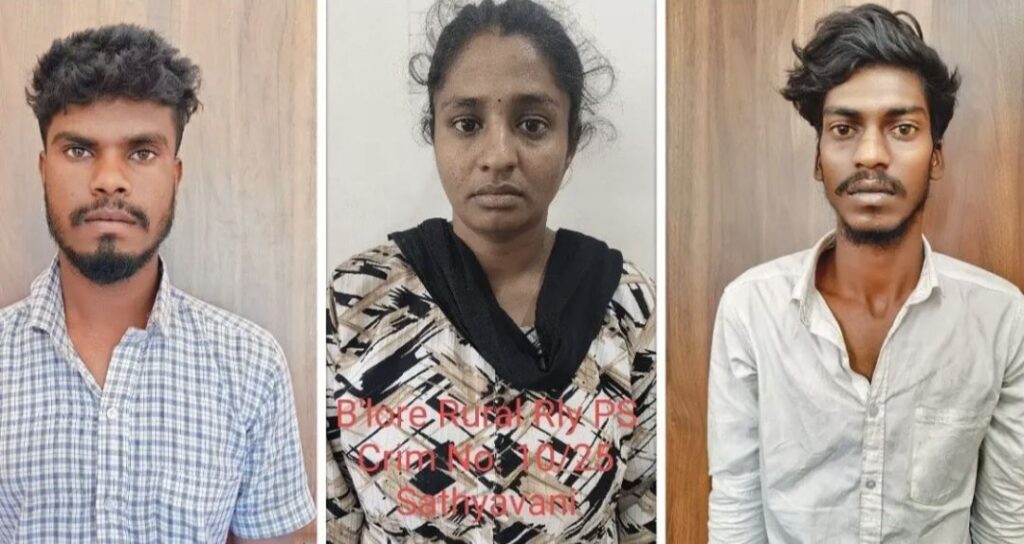 ತಮಿಳುನಾಡು ಕೃಷ್ಣಗಿರಿ ಜಿಲ್ಲೆಯ ಹೊಸೂರು ತಾಲ್ಲೂಕಿನ ದೊಡ್ಡೂರು ಗ್ರಾಮದ ನಿವಾಸಿ ಸತ್ಯವಾಣಿ(27), ಕೋನೆರಪಲ್ಲಿಯ ವರದರಾಜ್(23) ಹಾಗೂ ಬೆಂಗಳೂರಿನ ದಾಸನಪುರ ಹೋಬಳಿಯ ಆಲೂರು ಗ್ರಾಮದ ಸಿ.ಶ್ರೀನಿವಾಸ್ ಬಂಧಿತರು.