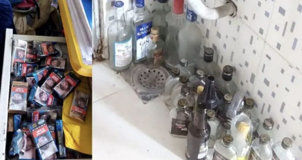 ವಿಶ್ವವಿದ್ಯಾಲಯದ ಬಾಲಕಿಯರ ಹಾಸ್ಟೆಲ್ನಲ್ಲಿ ಸಿಗರೇಟ್ ಪ್ಯಾಕ್, ಮದ್ಯದ ಬಾಟಲಿಗಳ ರಾಶಿಯೇ ಕಂಡುಬಂದಿದೆ.