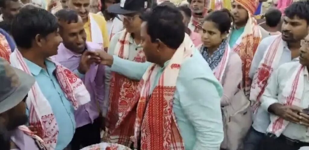 ಅಸ್ಸಾಂ:ಬಿಲಾಸಿಪಾರಾದಲ್ಲಿ ವಿಲಕ್ಷಣ ಘಟನೆಯೊಂದು ನಡೆದಿದೆ. ರಸ್ತೆ ನಿರ್ಮಾಣ ಕಾಮಗಾರಿಯ ಶಿಲಾನ್ಯಾಸ ಕಾರ್ಯಕ್ರಮದಲ್ಲಿ ಕೆಂಪು ಬಣ್ಣದ ರಿಬ್ಬನ್ ಬದಲಿಗೆ ಗುಲಾಬಿ ಬಣ್ಣದ ರಿಬ್ಬನ್ ಬಳಸಿದ್ದಕ್ಕೆ ಎಐಯುಡಿಎಫ್ ಶಾಸಕ ಸಂಸುಲ್ ಹುದಾ ಬಾಳೆ ಗಿಡದಿಂದ ನೌಕರನ ಮೇಲೆ ಹಲ್ಲೆ ನಡೆಸಿದ್ದಾರೆ.